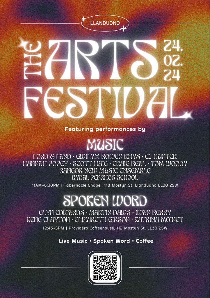 - Llandudno Arts Festival 2024 – Spoken Word Stage, Providero Coffee House, Performance and Music from 12.45 to 5pm, 24th February 2024.
